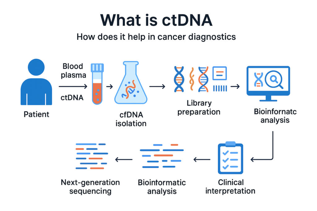 These ripples are called circulating tumour DNA (ctDNA), tiny fragments of genetic material shed by tumour cells as they grow, divide, and die.